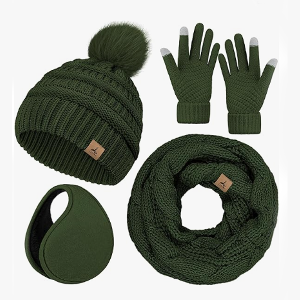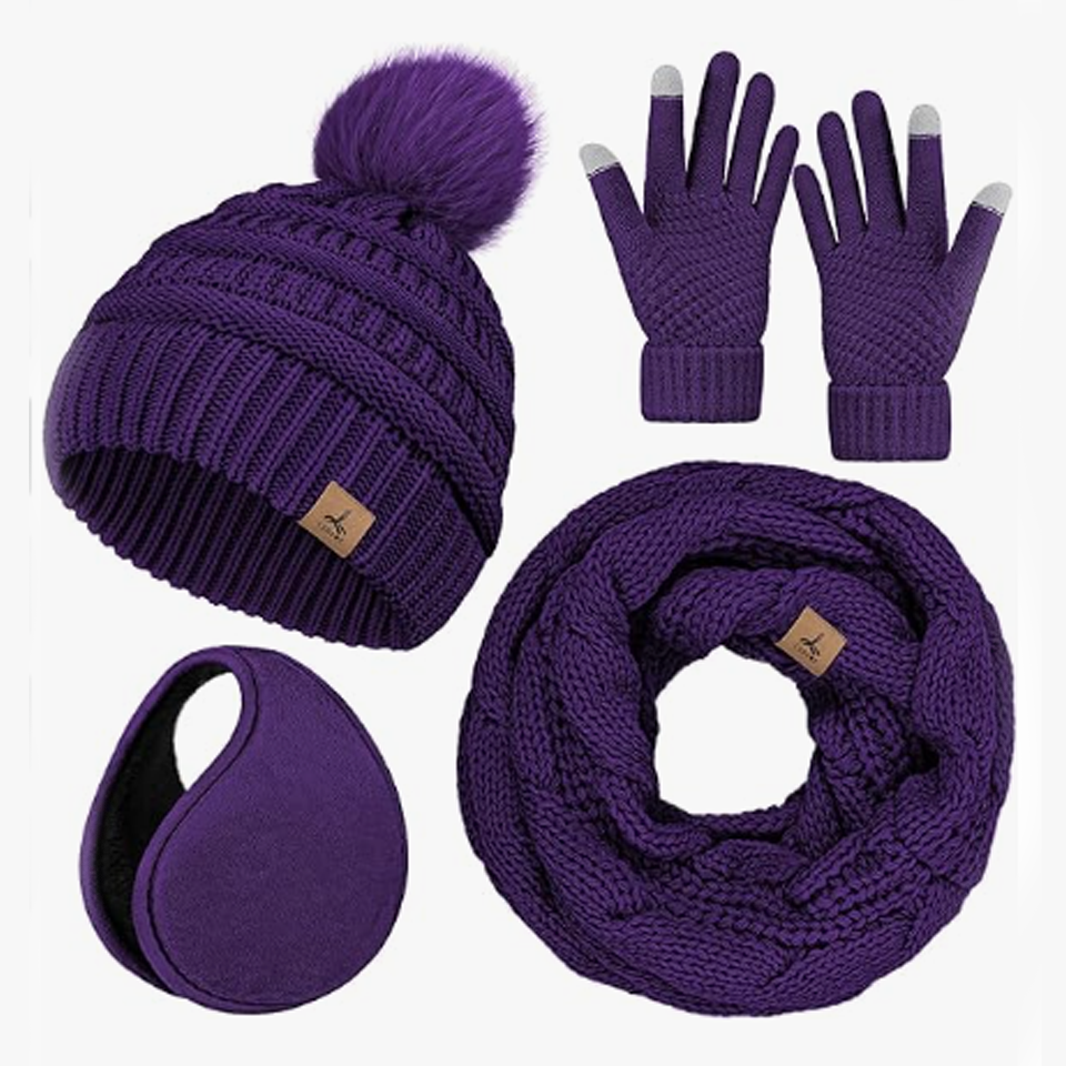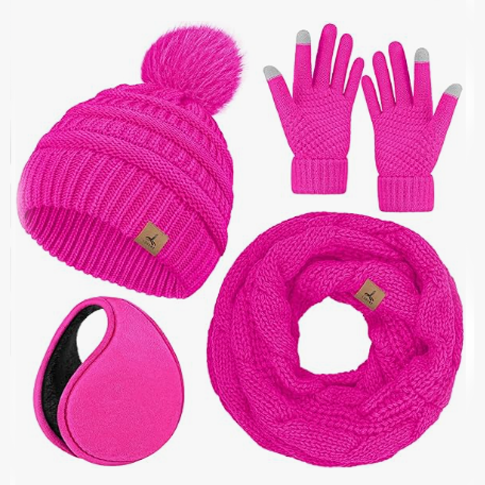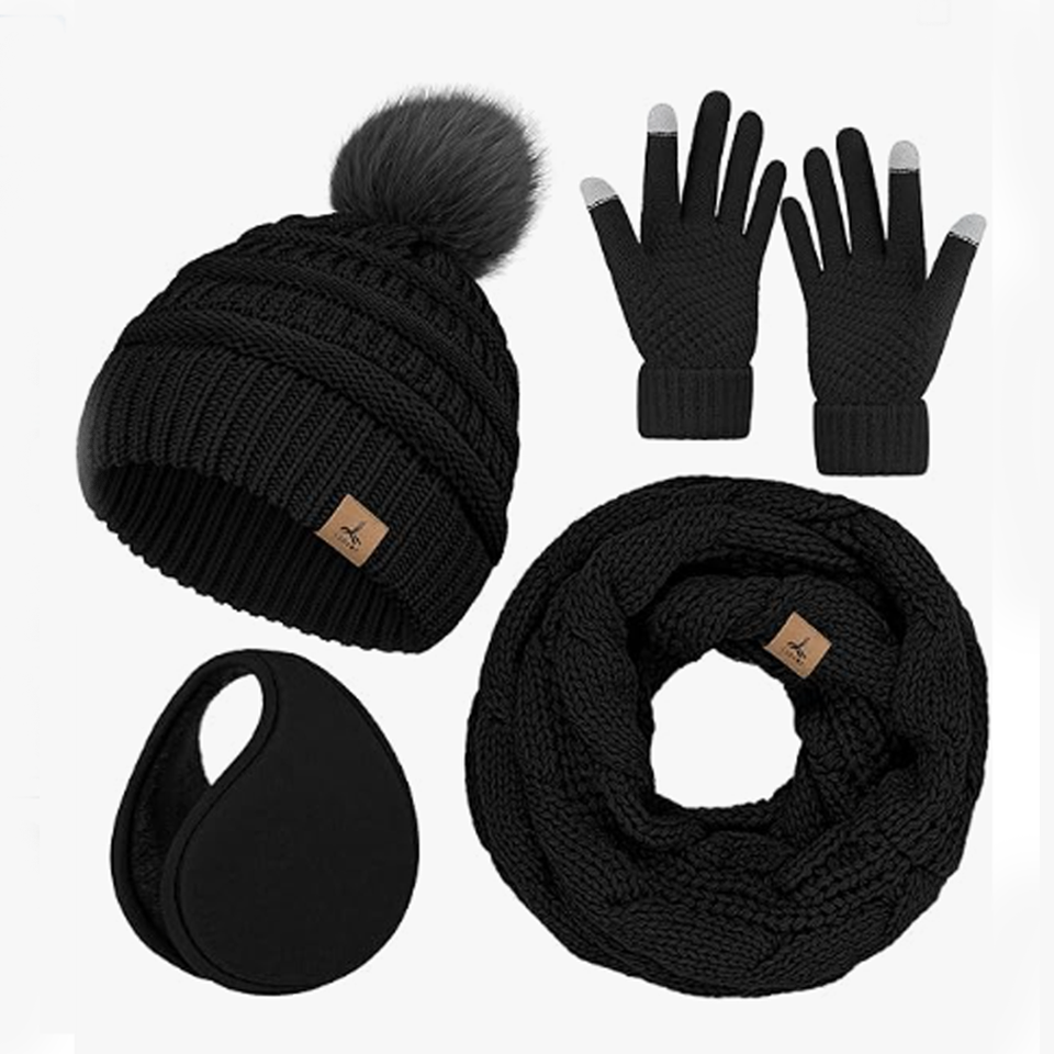 - What’s Included – This 4-piece winter beanie set comes with 1 pcs winter hat, 1 pcs winter scarf, 1 set winter gloves, and 1 pcs winter ear warmer. Our gloves and hat sets for women will keep you warm and fashionable.
