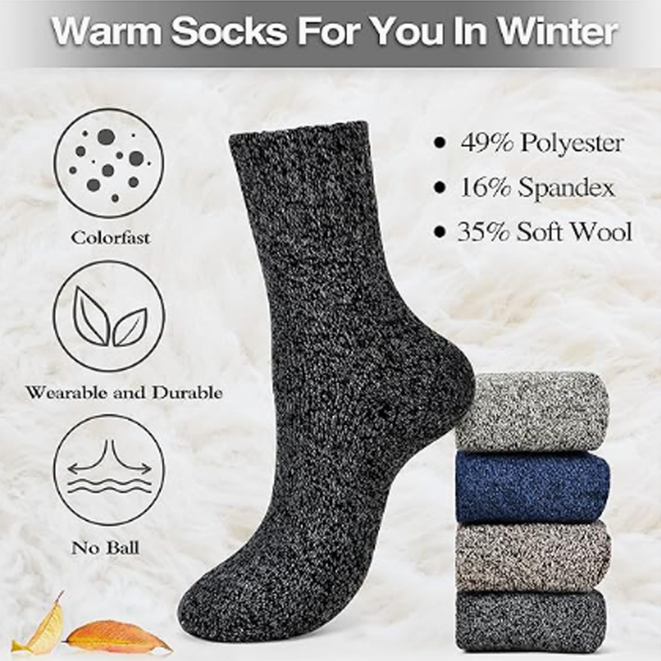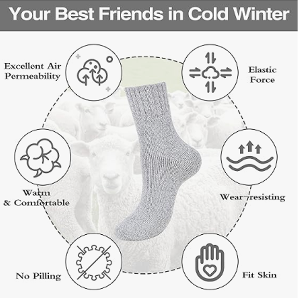 - CLASSIC & SIMPLE: With classic solid colors and simple style, our warm winter socks are befitting for different situations and coordinate with whatever you’re wearing. These crew socks are good matching for all your sneakers, boots, snow boots, and sport shoes. Brighten up those cold winter mornings with thick knit thermal wool socks and keep your feet warm.